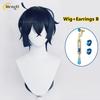 In Stock Anime Vanitas Synthetic Unisex 65cm Blue Black Cosplay Anime Wig And Earrings Heat Resistant Hair Halloween Party Wigs