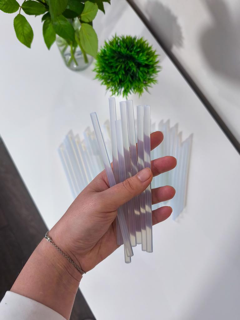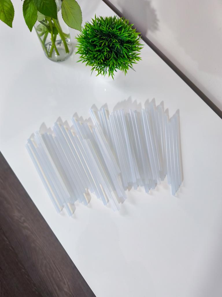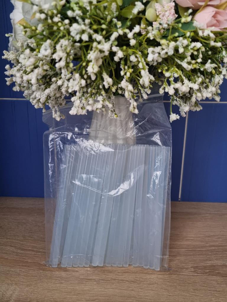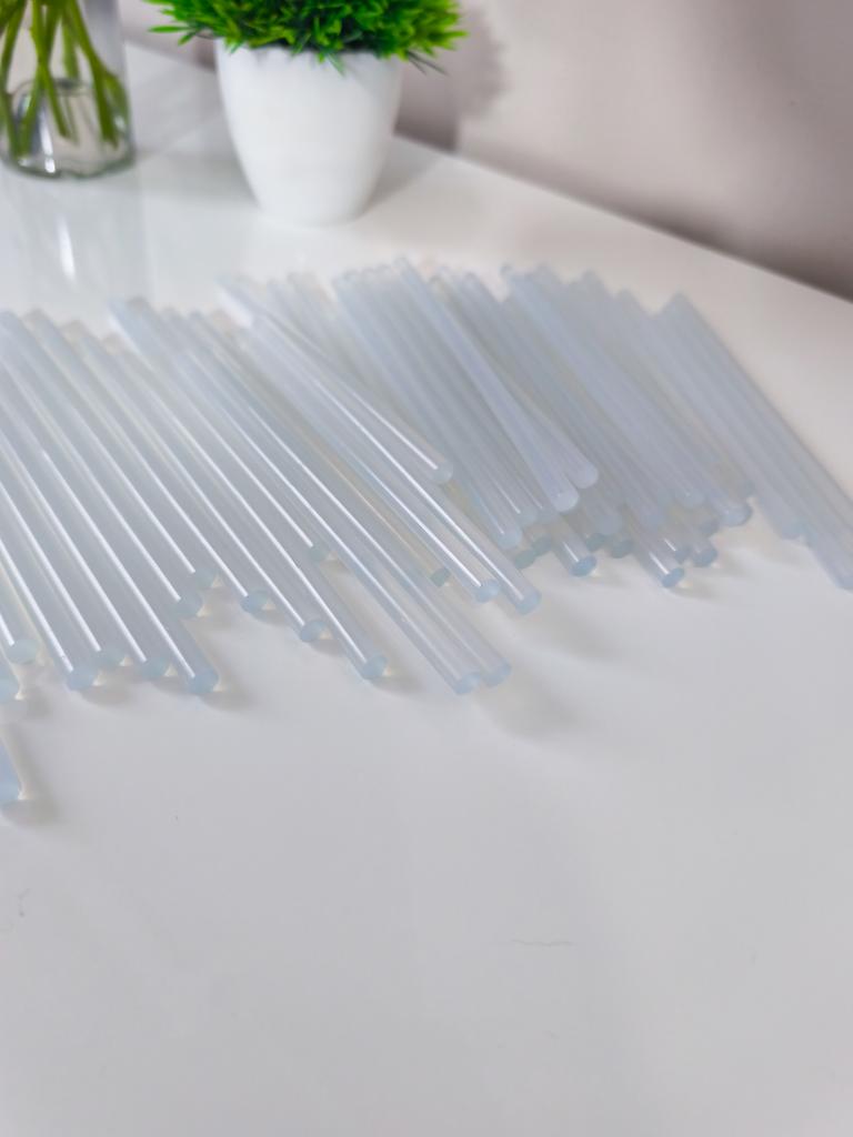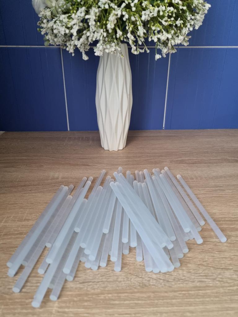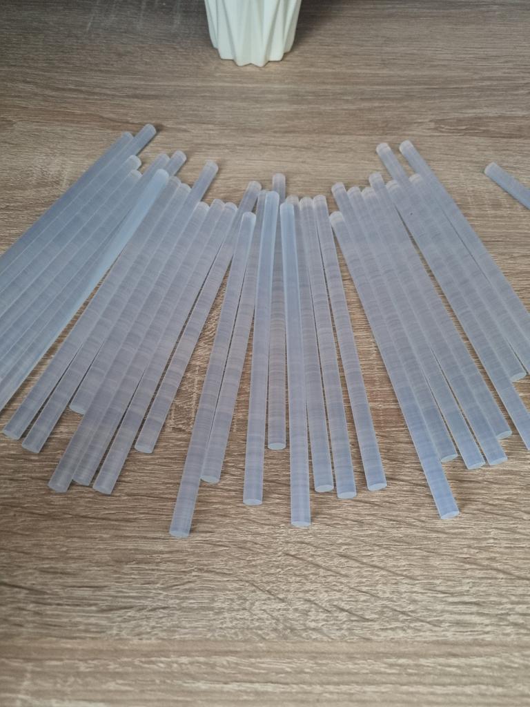 Pack of hot melt glue sticks. The pack contains 50 bars, they can be used for both large and small dispensers (I use it for a small one and it works perfectly). They are transparent. I ordered the large one but if you don't need that many there are packs of 5, 10 and 20 sticks. Each bar measures approximately 16 centimeters They work super well, I recommend them.