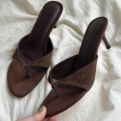Leather Suede Suede French Stiletto Flip-flops Women's Outerwear 2025 New Spring and Summer High-heeled Sandals