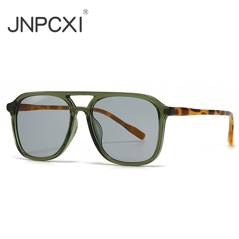 Retro Double Bridges Men Square Sunglasses Fashion Green Leopard Women Trending Gradient Sun Glasses