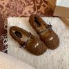 Fashion Commuter Retro Flat-bottomed Fluffy Shoes Women's 2025 New Autumn and Winter Velvet Round Head Soft Sole Mary Jane Cotton Shoes