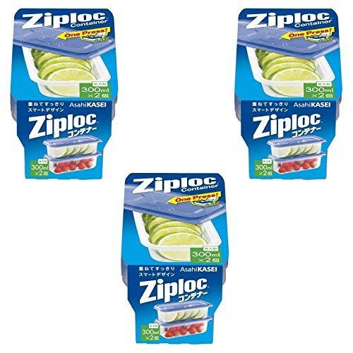 Bulk Purchase: Ziploc Storage Containers, Rectangular, 300ml, Pack of 2 (8cm L X 15.6cm W X 5.3cm H) (3 X 2 Containers)