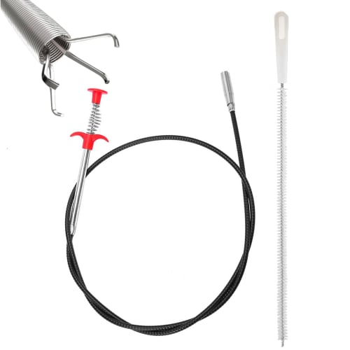 - Easy to use 2-piece package: 4-claw cleaner and nylon brush.With a maximum length of 60cm, it thoroughly cleans dirt deep inside.The corners on both ends are 3cm open, so you can use it according to the size of the pipe.The other one is 45cm long, high quality material, nylon brush, tight and durable, the tip can be rotated to easily remove hair and clogs in the drain.