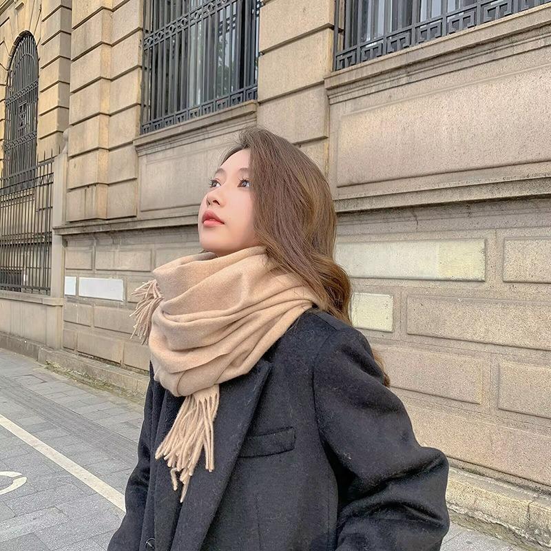Imitation Cashmere Scarf Women's Autumn and Winter Warm Thickened Women's Winter Solid Color Monochrome Fringed High-end Shawl