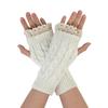 Women's Winter Warm Wool Gloves, Fingerless, With Beautiful Lace And Short
