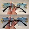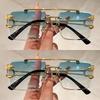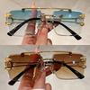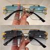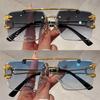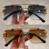 2 Pairs Per Set Rimless Square Sunglasses Fashion Vintage Double Bridge Gradient Shades Trendy Luxury Brand Design Sun Glasses