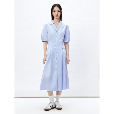 PEACEBIRD Women's French Style Lapel Puff Sleeve Shirt Dress