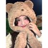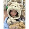 Cartoon Bear Plush Hat Autumn and Winter Scarf Hat Integrated Hat Thickened Windproof Warm Versatile Scarf