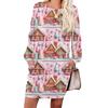 Women's Snowflake Print Fashionable Long-sleeved Round-neck Pocket Dress
