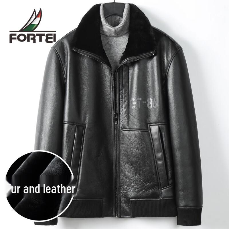 Futing Men's Shearling Lined Genuine Leather Winter Jacket