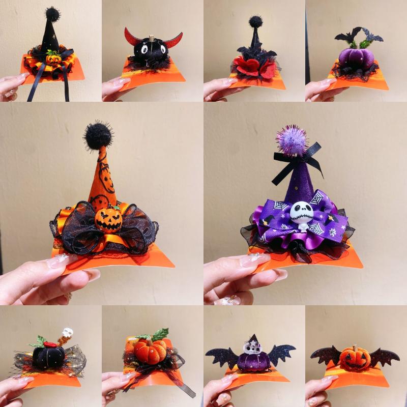 Funny Halloween Hair Accessories Cute Girls Hat Hairpin Pumpkin Bat Decor Hair Clips For Children Party Dress Up Headwear