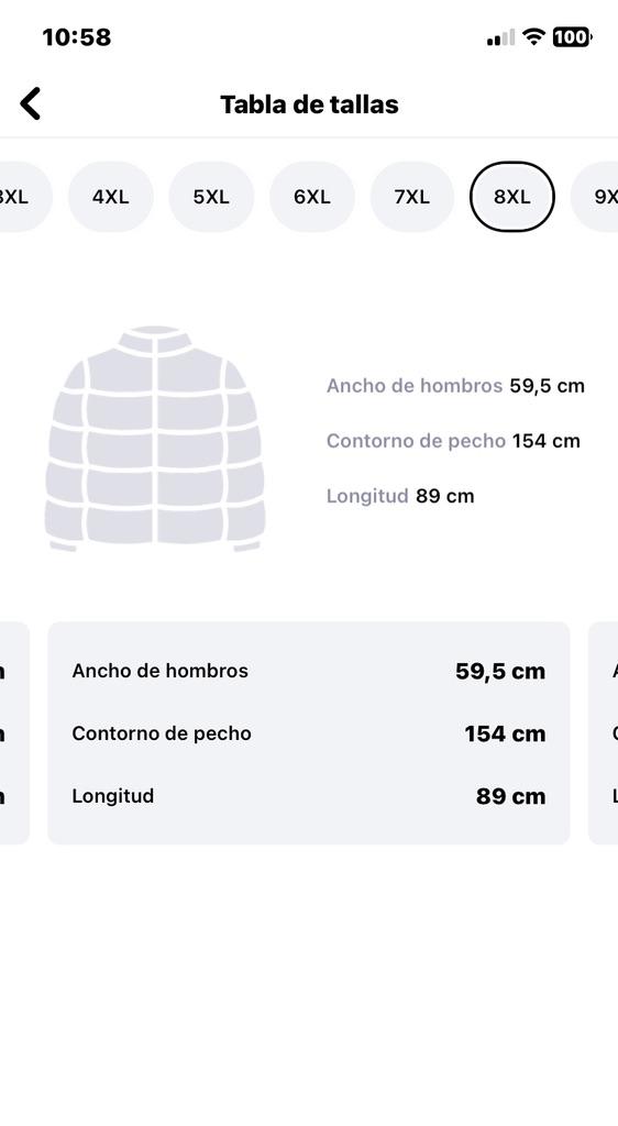 It does not correspond to the size sold; according to the size guide, it has a circumference of 154 cm, but in reality, it does not reach 130 cm. It is an 8XL size and does not meet the measurements; I cannot use it and want to return it. I attach demonstrative photos.