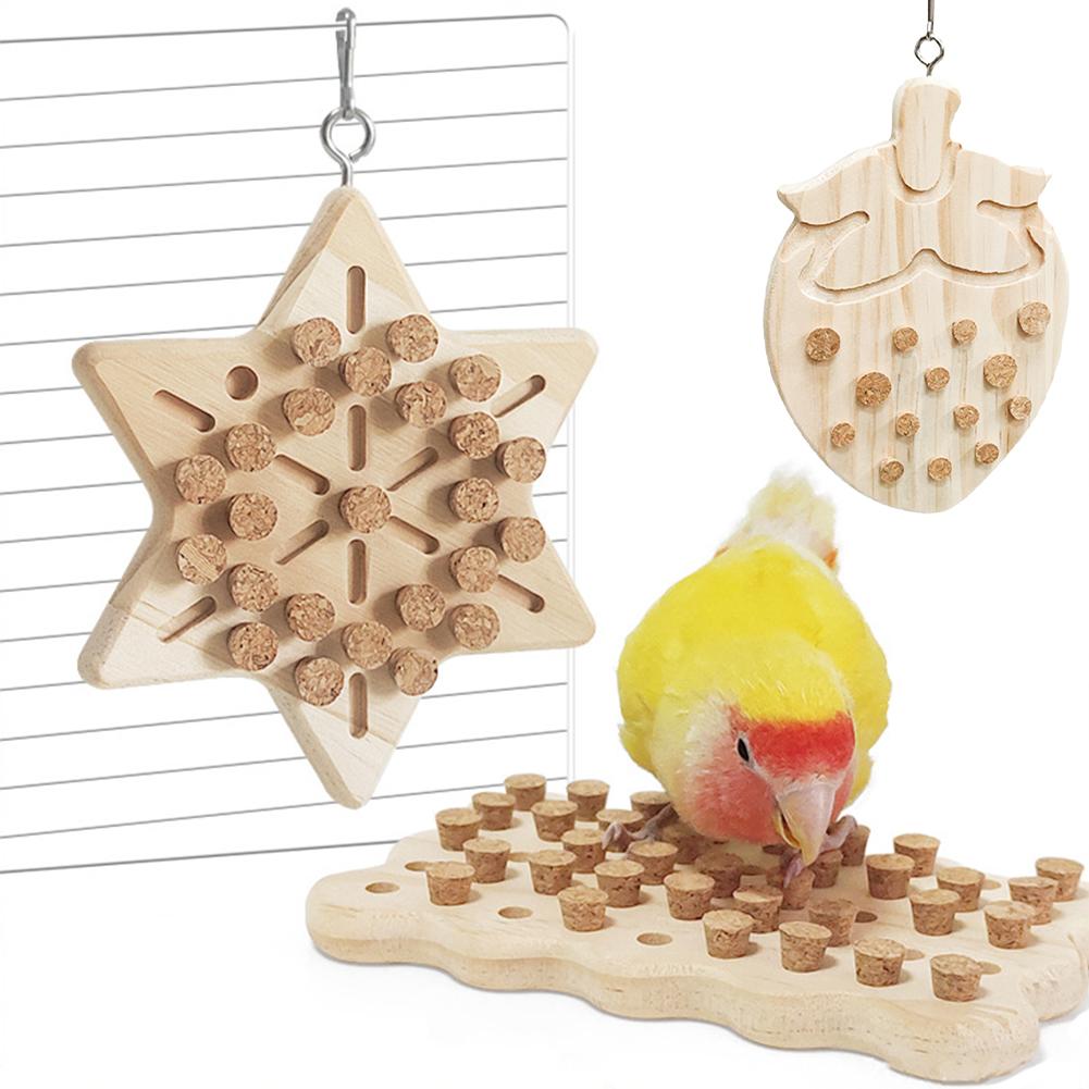 Parrot Chewing Toys Natural Wooden Parrots Block Cork Puzzle Toy Hanging Small Birds Playing Tearing Toy Bird Accessories