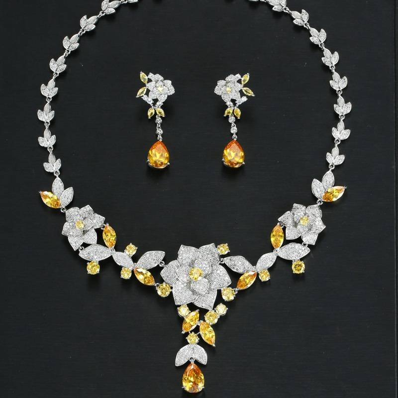Luxury Camellia Bridal Zircon Necklace Earrings Set Gala Wedding Dress High-end Jewelry Ladies