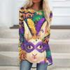 Women's Fashionable Round Neck Raglan Long Sleeved Carnival Printed Casual Pullover Top