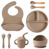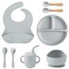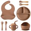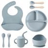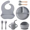 Color Kids 8PCS Silicone Baby Feeding Set With Bowl Suction Plate BPA Free Waterproof Bib Spoon Fork Toddler Training Utensils