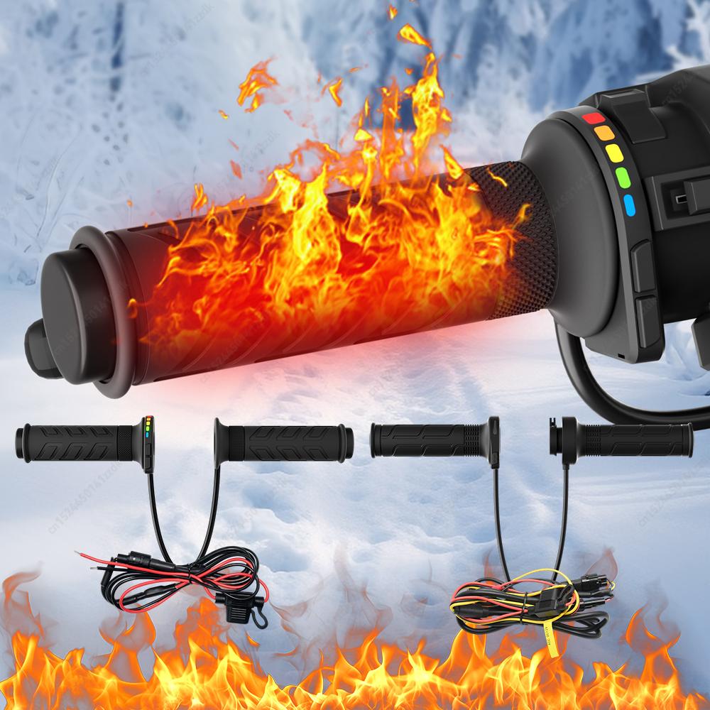 1 Pair Universal Motorcycle Hand Heated Grips Electric Molded Grips Scooter Hand Warmer 22mm Motocross 5 Gear Adjustable Hot Gri