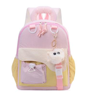 Childrens Blocked Color Backpack With Plush Pendant For School And Outings