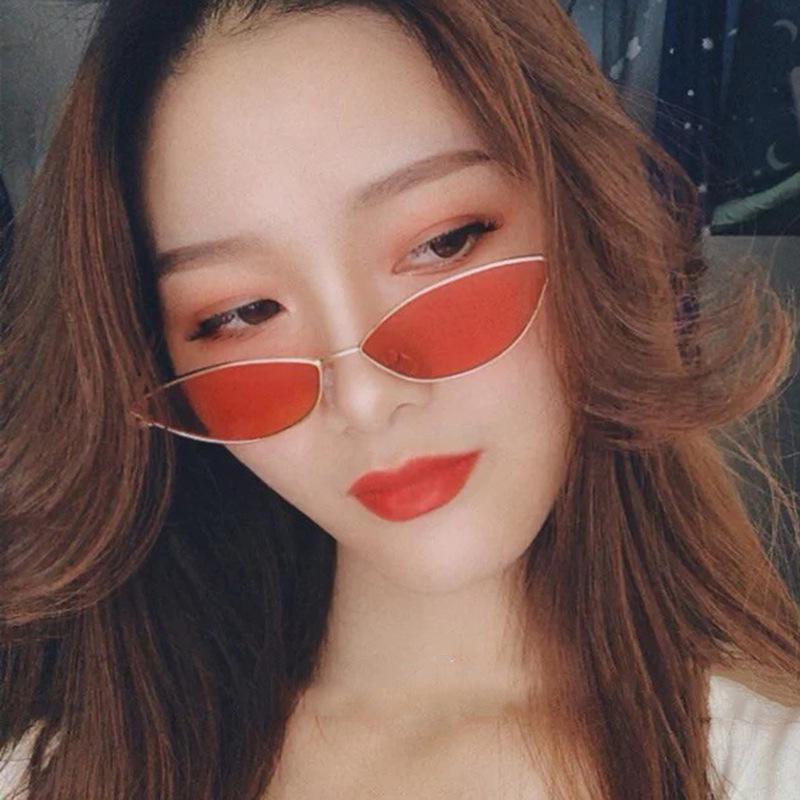 New Brand Designer Small Red Cat Eye Style Sunglasses Woman Vintage Metal Glasses For Female Ocean Mirror Sol