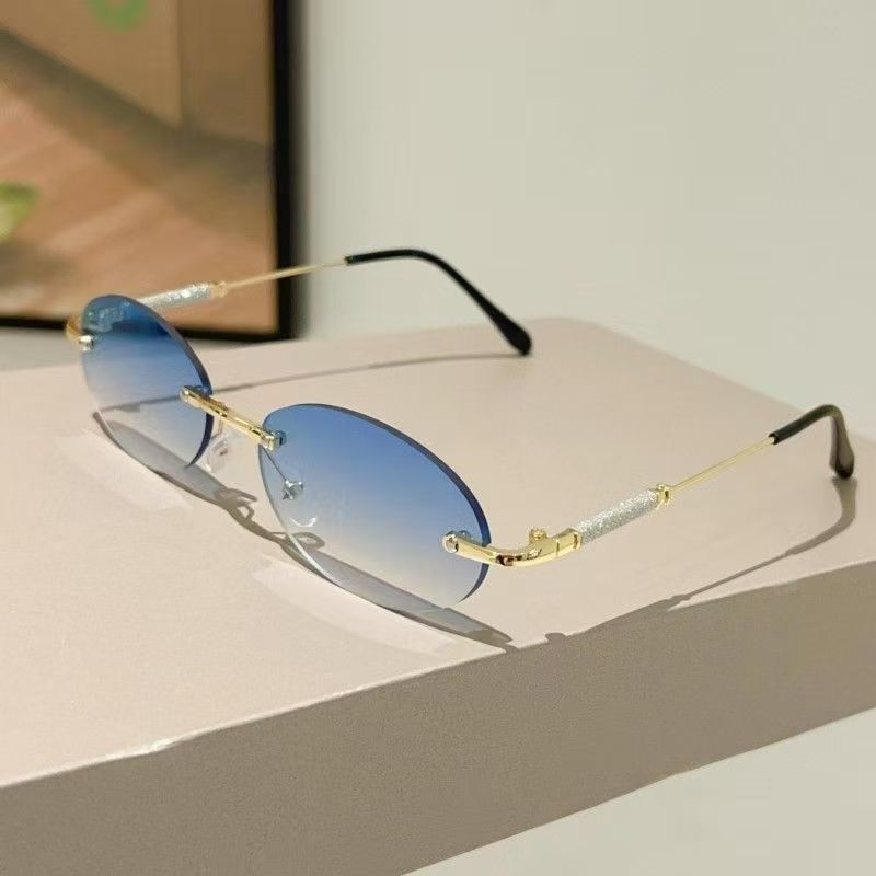 Small Frame Oval Rimless Sunglasses For Women Men Luxury Brand Eyewear Vintage Round Sun Glasses Ladies Fashion Boundless Shades