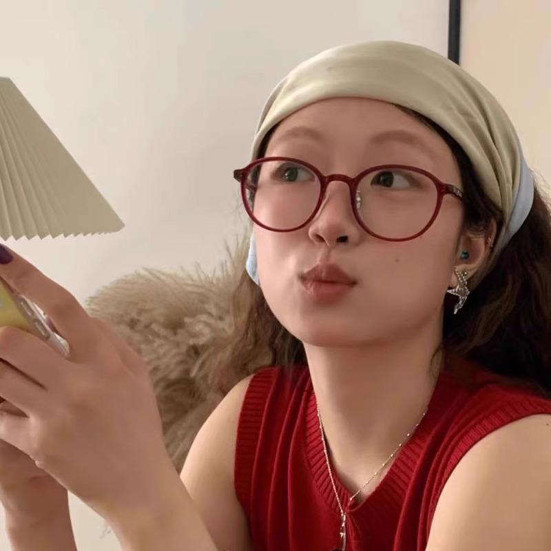 Ultra Light Anti-Blue Light Glasses Red Round Frame Fashion Plain Glasses Can Be Matched With Prescription Myopia