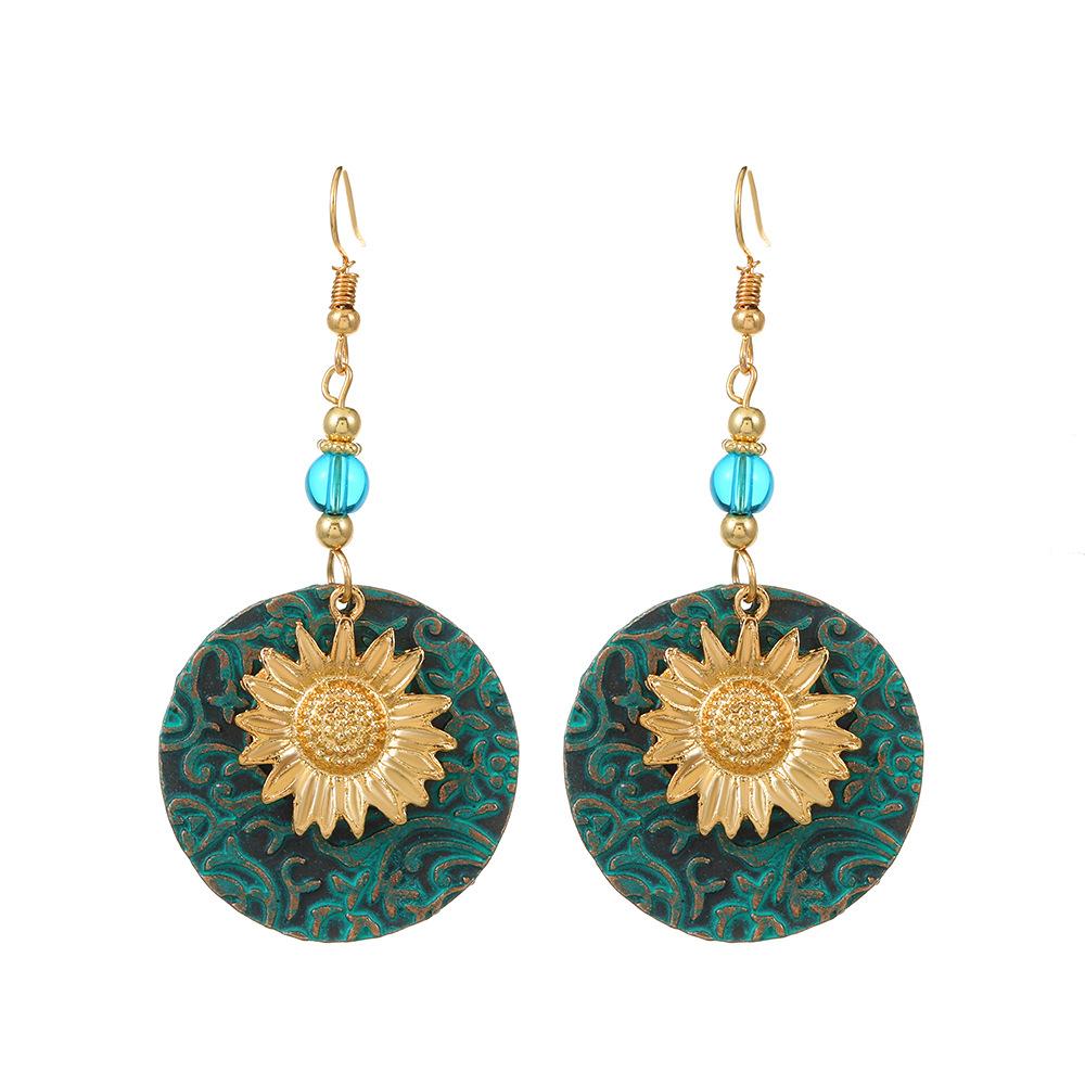 High Quality 2026 Bohemian Double Layer Sunflower Pattern Earrings Vintage Fashion Flower Pendant Earrings