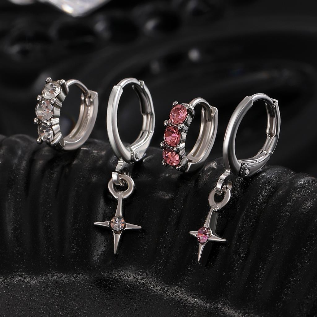 Ins Colored Zircon Earrings And Rings For Women Sweet Cool Mango Star Feather Stud Jewelry