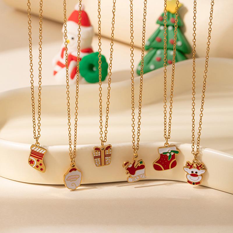 Stainless Steel Reindeer Necklace - Christmas Cartoon Clavicle Chain with Creative Design