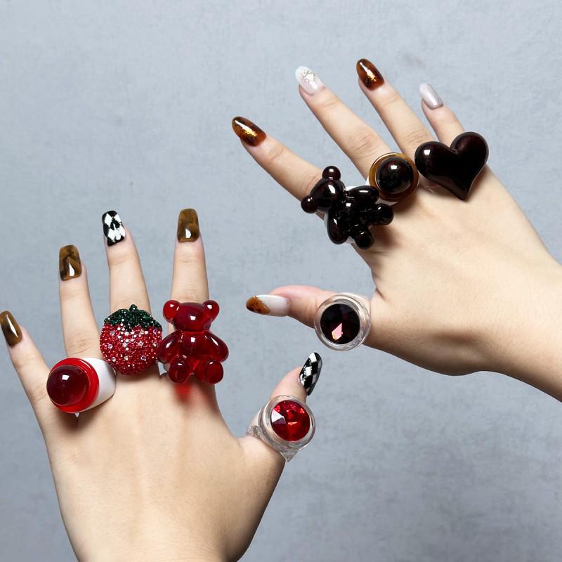 Heart & Bear Diamond Ring - Cute Strawberry Jewelry Christmas Gift