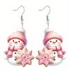 Acrylic Pink Glitter Christmas Snowman Earrings for Women - Ideal Party Jewelry