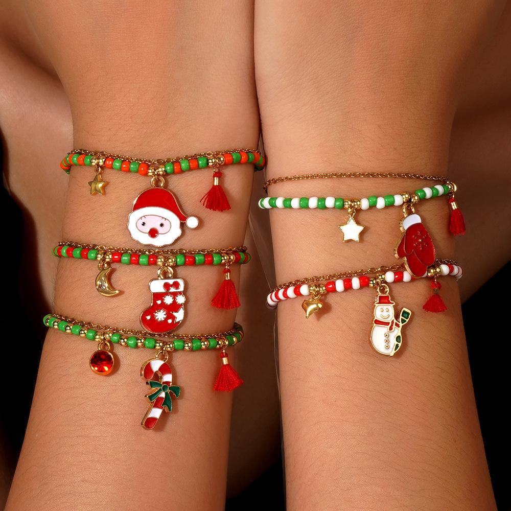 Cross-border Christmas Series Santa Claus & Snowman Seed Bead Multi-Layer Bracelet with Pendant & Glove Charms