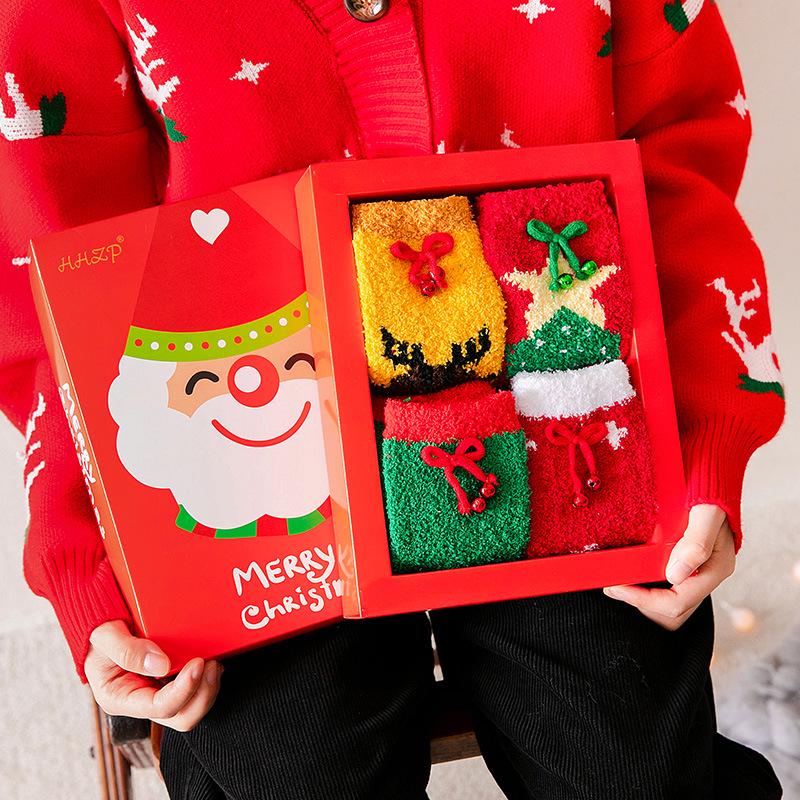 Cozy Coral Fleece Santa Socks with Bow & Bell - Mid-Calf Christmas Gift for Couples