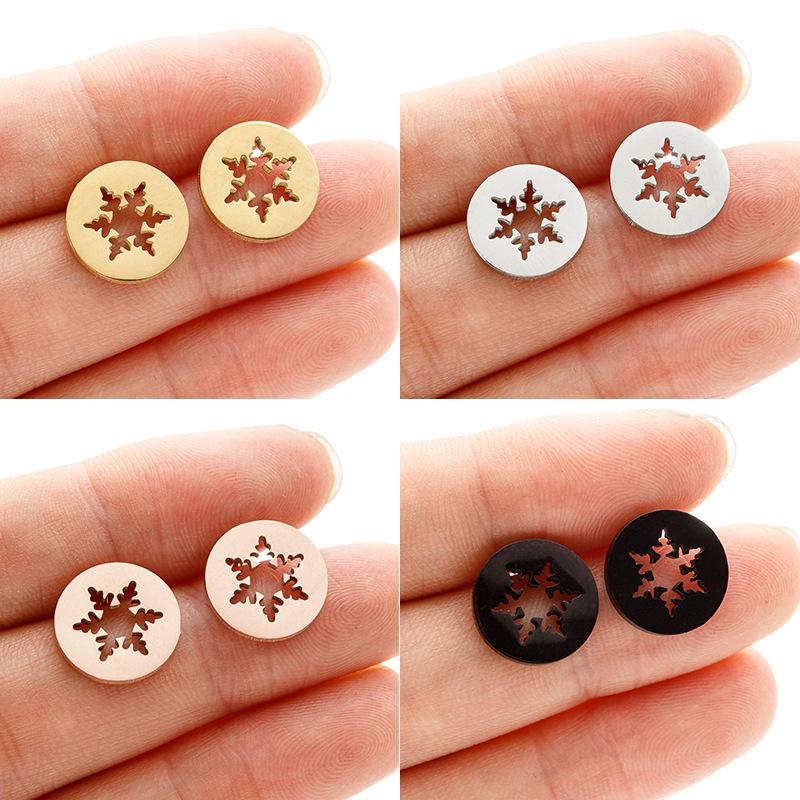 2025 Winter Stainless Steel Snowflake Stud Earrings - Geometric Round Luxury Jewelry