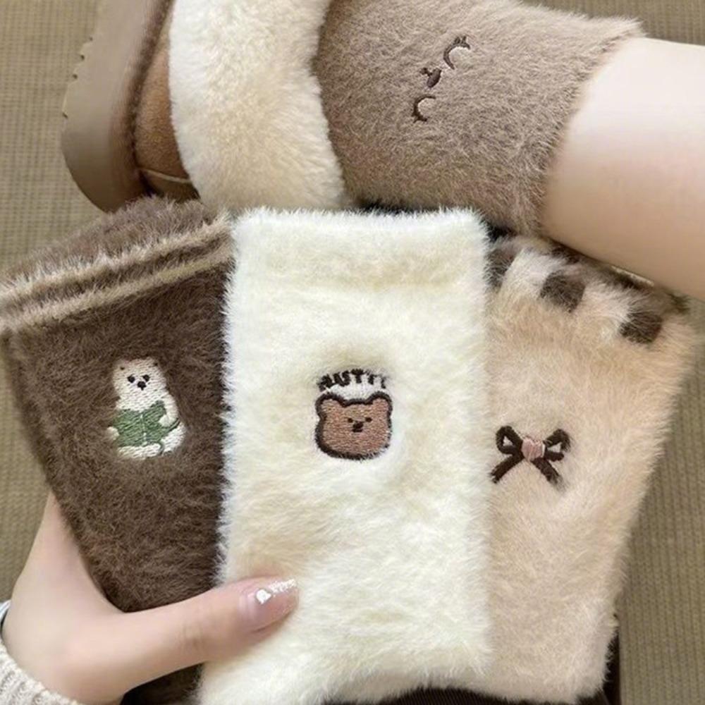 Anti-slip Mink Velvet Socks Cartoon Fluffy Mid Socks Soft Floor Plush Sock