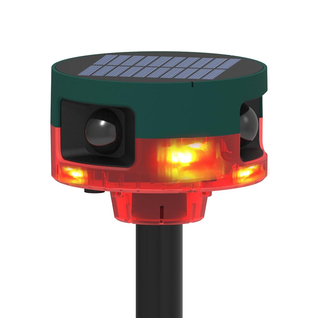 "360° Omnidirectional Infrared Sensor Alarm" Extermination Principle: 129db loud sound and 6 LED explosive flashlights cause animals to become annoyed and automatically flee. Eliminate the troubles of animal droppings, feeding damage, noise, and footprints. The infrared sensor detects up to 5-8m (affected by ambient temperature and temperature). The product can be used outdoors in all weather conditions, is IP55 waterproof and dustproof, solar-powered, and energy-saving, eco-friendly, and safe. Due to the loud sound, please refrain from using it indoors to avoid disturbing neighbors.