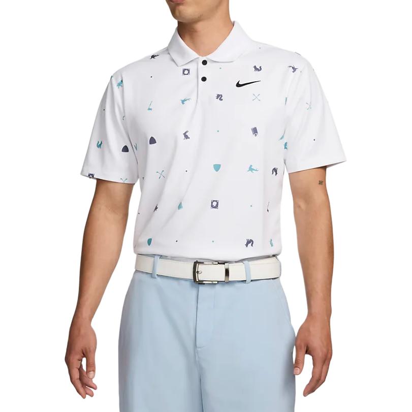 Nike All Over Logo Print Short Sleeve Polo Shirt Men Tops White FQ0427-100