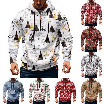 Men's Christmas Print Hooded Half-Zip Casual Sports Sweatshirt