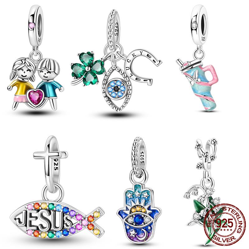 New Copper Clover Charms Beads Heart Gemstone Pendant Fit Original Charm Bracelet Women Jewelry Gift