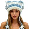 Women's Hand-Knitted Star Striped -Ear Braid Hat With Ear Protectioned, Fashionable And Versatile Cap