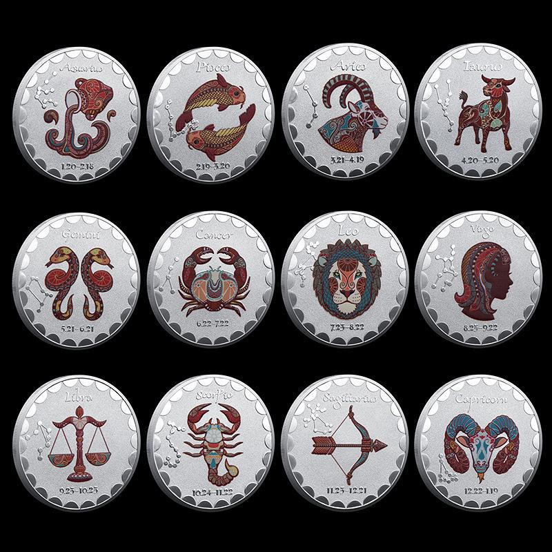 Twelve Constellation Commemorative Coins, European and American, Sun and Moon Gods, Lucky, Colorful, Constellation Enthusiasts, Collected Silver Coins