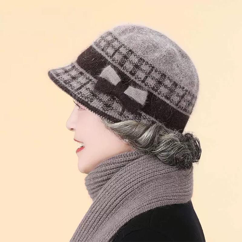 Fashion Outdoor Thickened Fleece Knitted Hat Winter Rabbit Fur Baseball Cap Warm Bow Basin Cap For Middle-Aged And Elderly