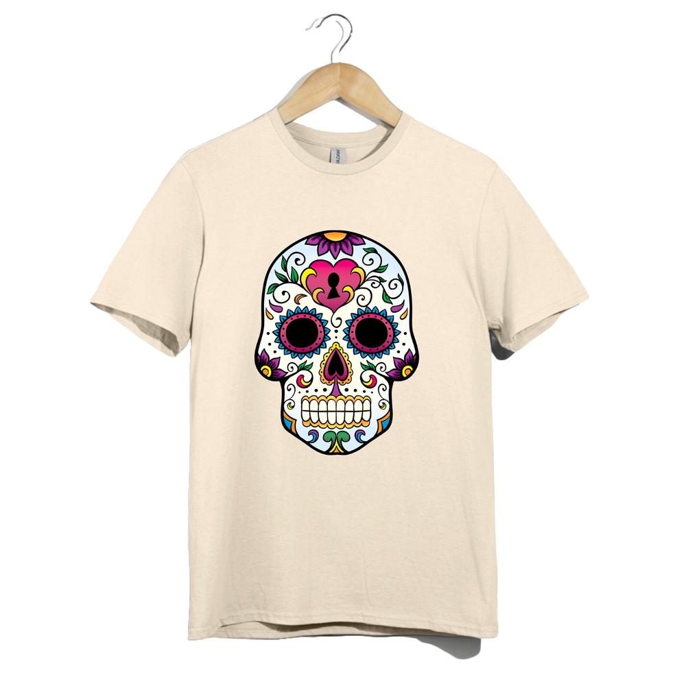Colorful Sugar Skull T-Shirt Day of the Dead Calavera Heart Tattoo Art Tee Gift