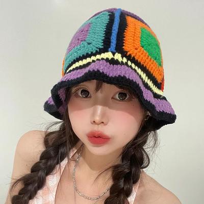 Spring and Summer New Famous Style Color Hand-knitted Bucket Hat Women's Sweet Versatile Face Small Color Matching Basin Hat