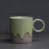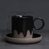 Creative Vintage Style Coarse Pottery Coffee Cup and Saucer Set with Flowing Glaze Finish for Latte Art Home Decor Use Gift Box