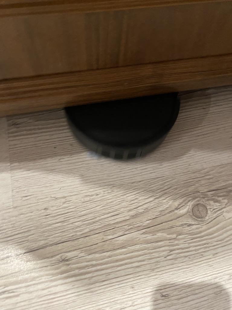 Very small, but runs quickly, and under the bed, and under the chest of drawers, and under the cabinets, chairs. Doesn't get in the way at home. Thank you. I recommend it, you will be satisfied.