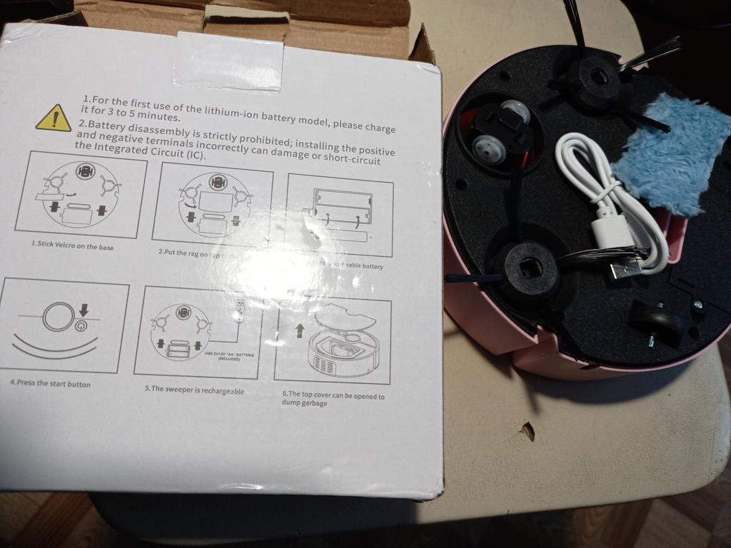 Good little vacuum cleaner. Arrived charged and worked for 45 minutes. When charging, it's unclear how long it takes! There's nothing anywhere. It goes well under low furniture, where a regular robot vacuum cleaner cannot go.