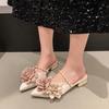Fashion Flower Women Mid Heels Slippers Pointed Toe Chunky Shoes Fashion Dress Pumps Designer Summer Slides 2025 New Zapatillas Ladies
