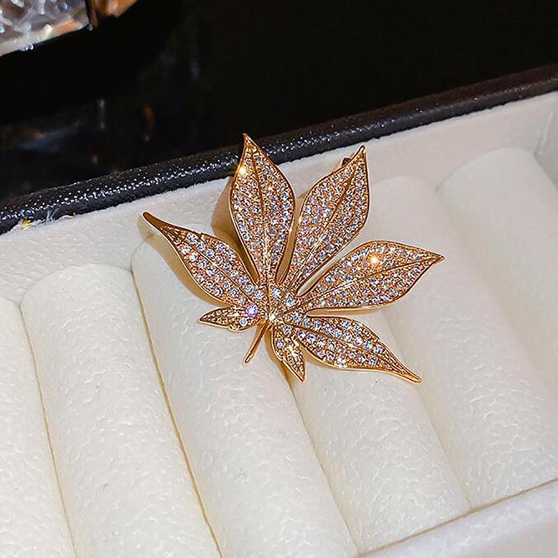 Elegant Maple Leaf Brooch with Rhinestone Embellishments