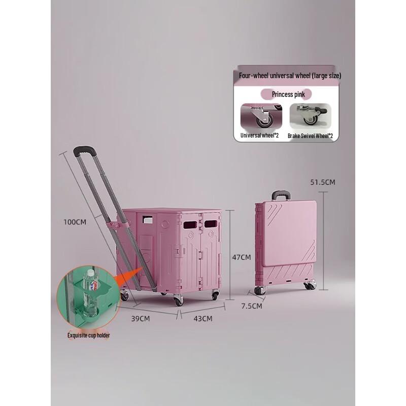 Upgraded Flat-Pull Four-Wheel Foldable Shopping Cart
