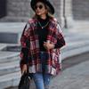 GMXIA Casual Plush Women's Hooded Five-quarter Sleeve Loose Checkered Unbuttoned Jackets & Coats